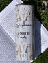 Avec une contenance de 20 oz (591 ml), ce verre a un couvercle hermétique et comprend une paille en plastique. Il conservera vos boissons chaudes pendant 6 heures et vos boissons froides pendant 18 heures. Imprimé par procédé de sublimation, nous vous recommandons de laver votre verre à la main pour assurer sa durabilité.