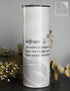 Avec une contenance de 20 oz (591 ml), ce verre a un couvercle hermétique et comprend une paille en plastique. Il conservera vos boissons chaudes pendant 6 heures et vos boissons froides pendant 18 heures. Imprimé par procédé de sublimation, nous vous recommandons de laver votre verre à la main pour assurer sa durabilité.
